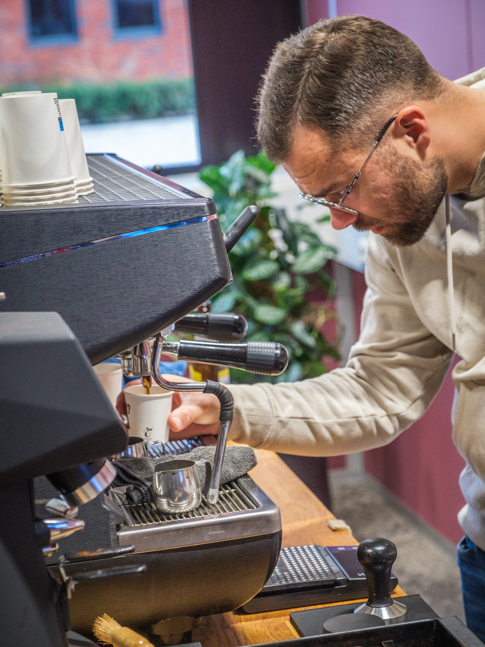 Ontdek hoe je thuis de perfecte kop koffie zet — met je eigen espressomachine; organiseer een leuk uitje met je vrienden of collega’s of train je medewerkers tot echte barista’s. Tijdens de workshops en trainingen van De Schenker leer je jouw espressomachine en bonenmaler echt kennen, stel je de juiste maling af en oefen je met het opschuimen van melk en het maken van latte-art. Je krijgt praktische tips, heldere uitleg én allerlei belangrijke koffieweetjes die jouw koffieskills direct naar een hoger niveau tillen.